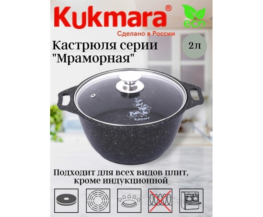 Кастрюля KUKMARA КМТ22а 2,0л. Темный мрамор