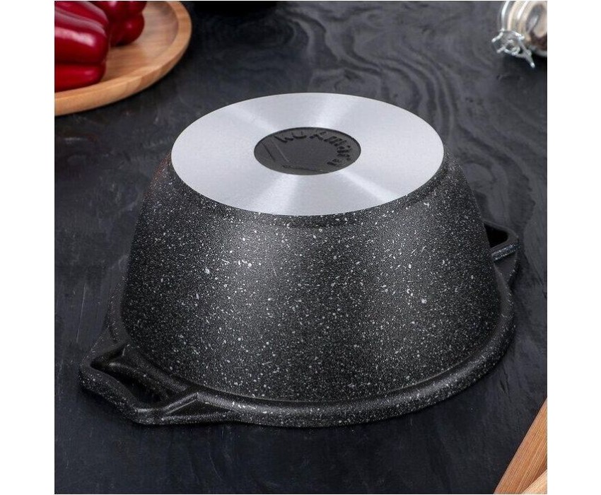 Объем, л./размер, см: 2.0л Материал: литой алюминий Коллекция/серия: Мрамор Торговая марка: Kukmara Толщина дна: 6 Толщина стенок: 4.5 Источник тепла: Все виды плит, кроме индукционной Тип упаковки: цветная коробка Крышка: стеклянная Внутреннее покрытие: антипригарное покрытие Greblon C2 фирмы Weilburger Coatings GmbH Внешнее покрытие: декоративное покрытие Poli Decor, Кирово-Чепецк