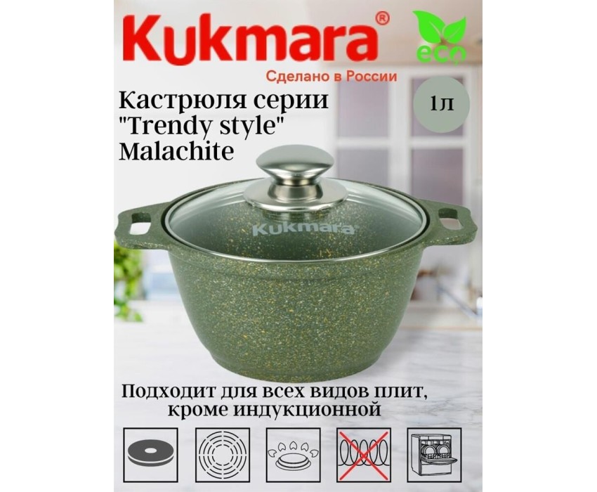 Кастрюля KUKMARA к11tsml а/пр литая 1,0л стекл/кр Trendy style malachite