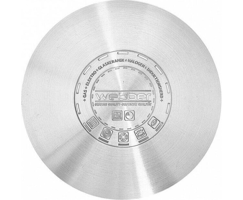 WEBBER BE-195/2 Параметры Объем 1,9 л Диаметр 16 см Высота 9 см Толщина стали 0,5 мм Описание Кастрюля из высококачественной нержавеющей стали Стеклянная крышка с отверстием для отвода пара Термосберегающее дно: пятислойное капсульное индукционное дно с повышенной термоотдачей Специальная форма, исключающая скопление остатков пищи и жира Быстрый нагрев пищи, длительное удержание тепла Для приготовления пищи достаточно небольшого количества воды и масла Минимальные потери минеральных веществ, витаминов и вкусовых качеств Может быть использована на всех типах кухонных плит, включая индукционные Подходит для мытья в посудомоечной машине