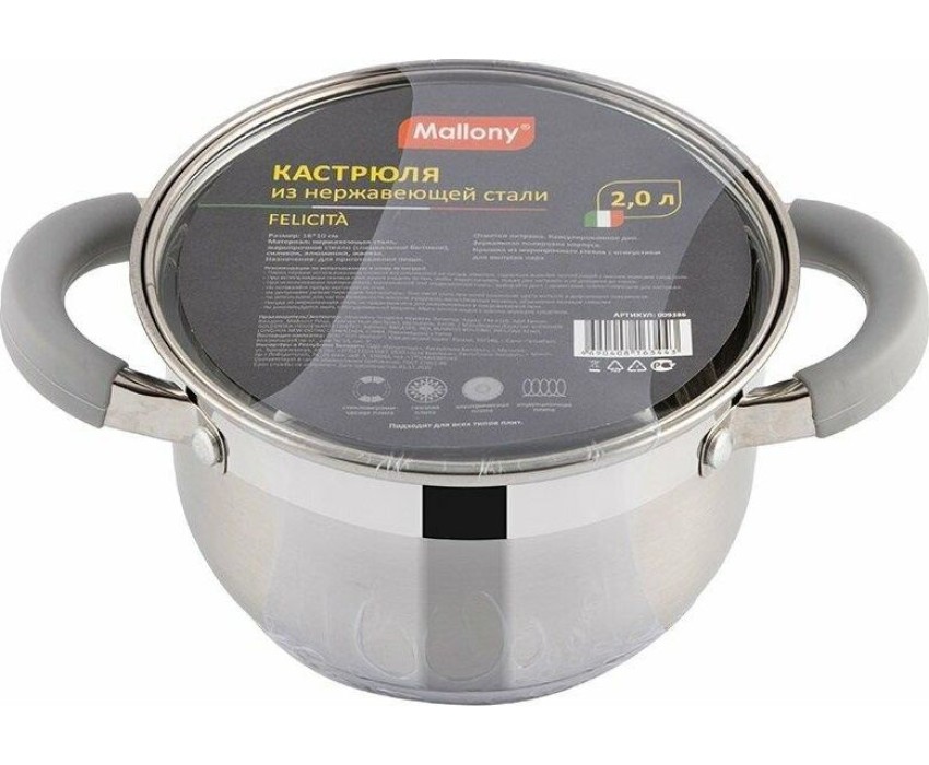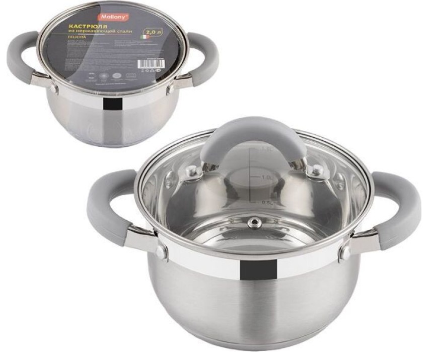 Кастрюля MALLONY Felicita, объем 2 л, из нерж стали с крышкой (009386)