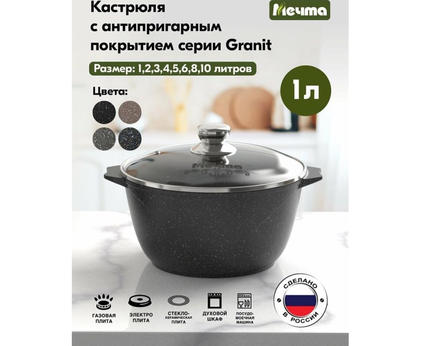 Кастрюля МЕЧТА 41802 Гранит black 1л