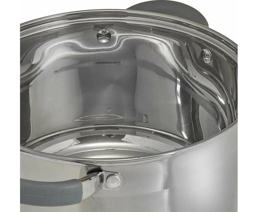 Параметры Объем 4 л Диаметр 20 см Глубина 12,5 см Толщина стенок 0,5 мм Описание Кастрюля из высококачественной нержавеющей стали со стеклянной крышкой Специальная форма, исключающая скопление остатков пищи и жира Термосберегающее дно: пятислойное капсульное индукционное дно с повышенной термоотдачей Быстрый нагрев пищи, длительное удержание тепла Минимальные потери минеральных веществ, витаминов и вкусовых качеств Может быть использована на всех типах кухонных плит, включая индукционные Подходит для мытья в посудомоечной машине