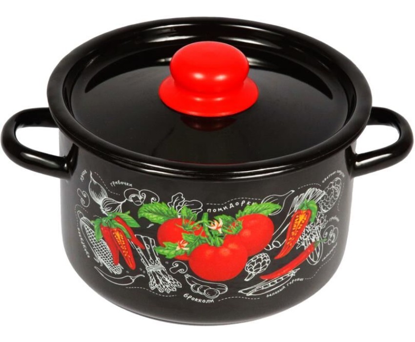 Кастрюля СТАЛЬЭМАЛЬ 1с16с/1 Помидорки эмал 2,9л черная