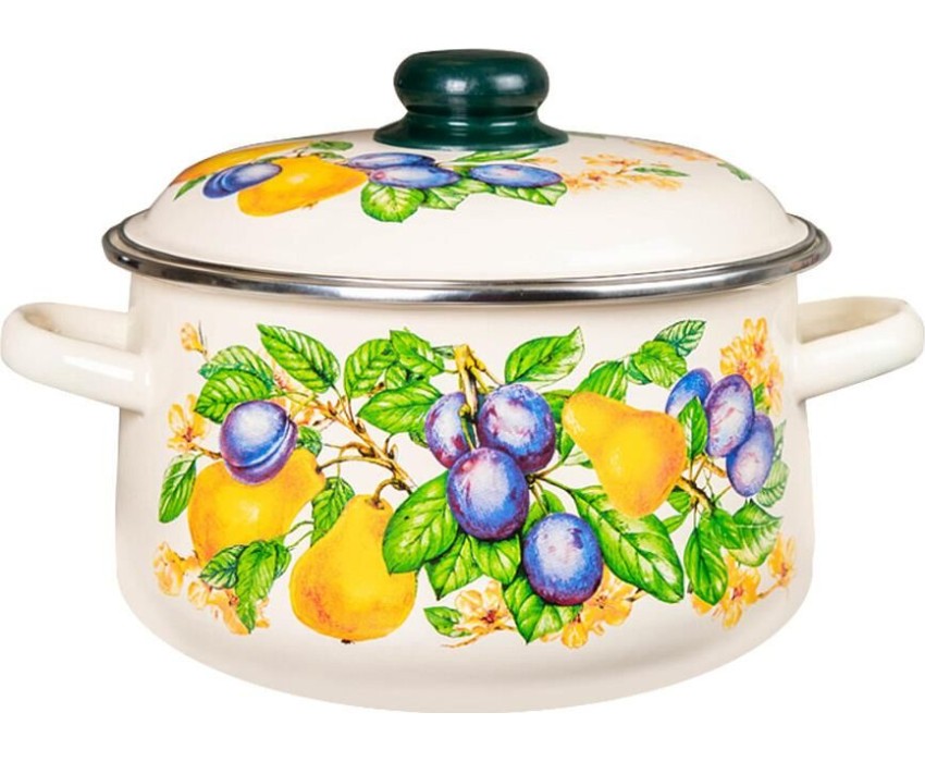 Погрузитесь в атмосферу изысканных вкусов с новой серией посуды «Дюшес» из высококачественной стали с эмалевым покрытием, украшенных авторским рисунком. Деколь, изображающая сочные сливы и спелые груши, придает посуде неповторимый шарм и делает ее не только функциональным элементом вашей кухни, но и украшением, которое будет вас радовать долгое время. Посуда очень экологична, не вступает в реакцию с пищевыми кислотами и щелочами, тем самым сохраняется вкус пищи, в нее не попадают вредные для здоровья