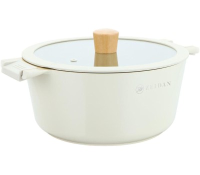 Кастрюля ZEIDAN Z-90247 7,7 л с крышкой, Кастрюля со стеклянной крышкой – 7,7 л (d28 см), литой алюминий, крышка - стекло с силиконовым ободком и деревянной ручкой, ИНДУКЦИОННОЕ ДНО, СИЛИКОНОВЫЕ НАКЛАДКИ, ВНУТРЕННЕЕ АНТИПРИГАРНОЕ ПОКРЫТИЕ «NEOGRES», ВНЕШНЕЕ ЖАРОПРОЧНОЕ АНТИПРИГАРНОЕ ПОКРЫТИЕ.