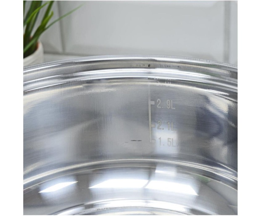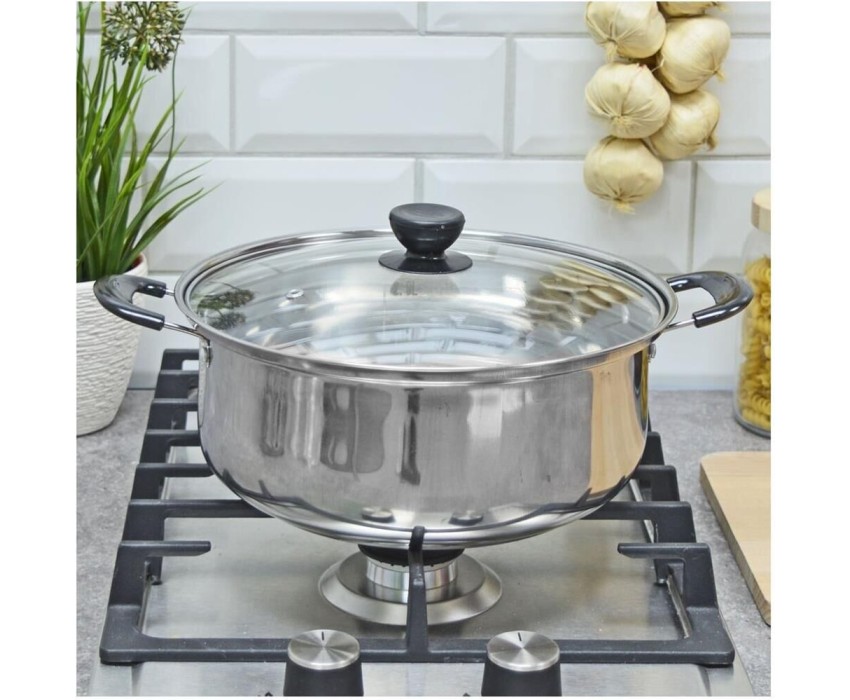 Кастрюля из нержавеющей стали с крышкой из жаропрочного стекла БЕЗ ТМ Promo, объем 3.6 л, (104616)