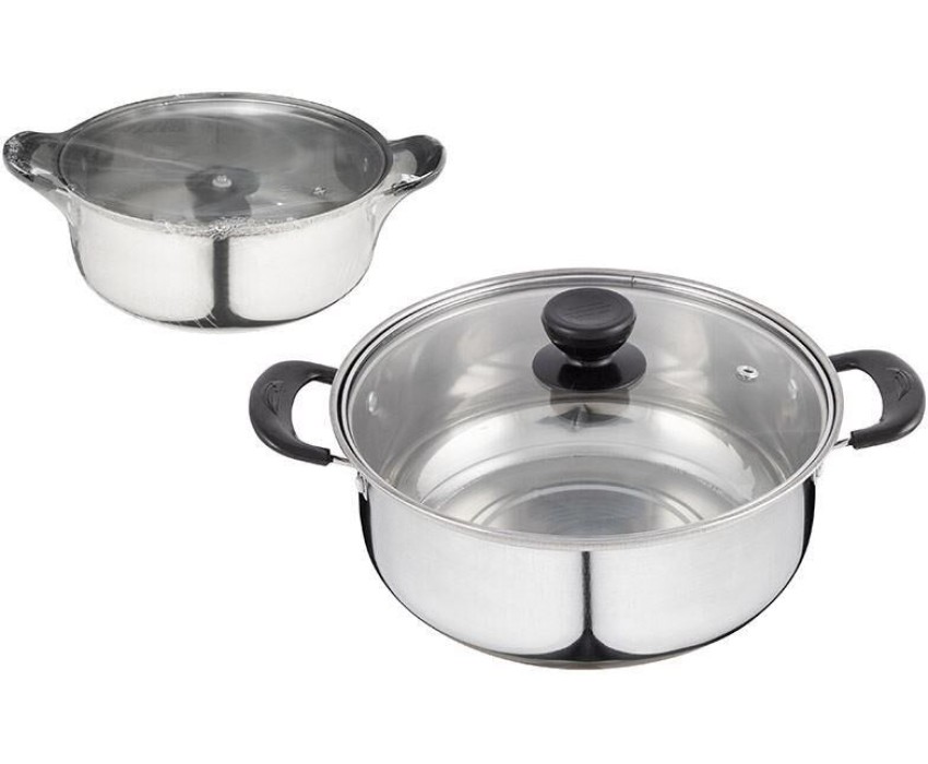 БЕЗ ТМ Кастрюля Promo, объем 2,2 л, из нержавеющей стали с крышкой из жаропрочного стекла (104614)