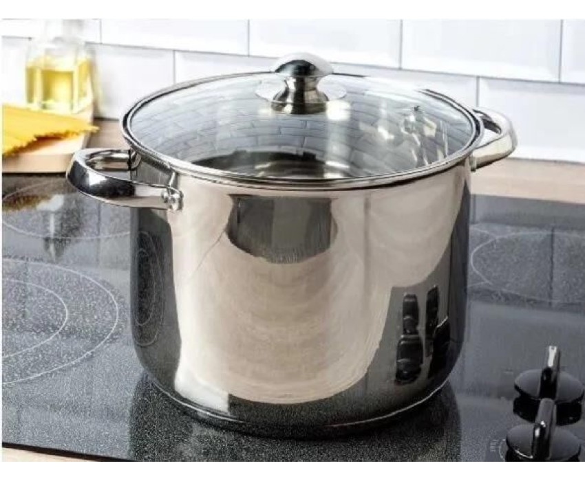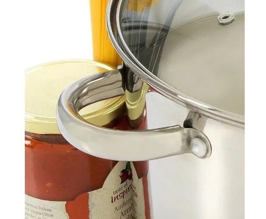 Дно 0,5мм алюминий + 1,5 мм железо + 0,5 мм алюминий, с одной степенью защиты ,Корпус цилиндрической формы Материал: нержавеющая сталь Стеклянная крышка в форме буквы С Клёпаные полые ручки из нержавеющей стали Ручка на крышке из нержавеющей стали Зеркальная полировка внутри и снаружи Внутри мерная шкала Дно толщиной 3 мм