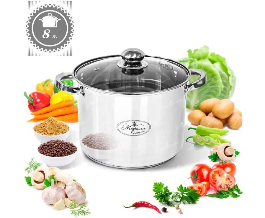 Кастрюля МЕРАЛИ МБ-80 Белиссимо с крышкой 8,0л