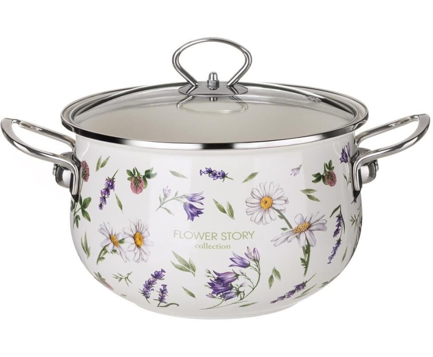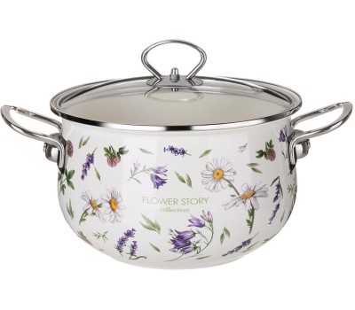 Кастрюля AGNESS 943-098 FLOWER STORY эмал. со стекл.крышкой 3,8л