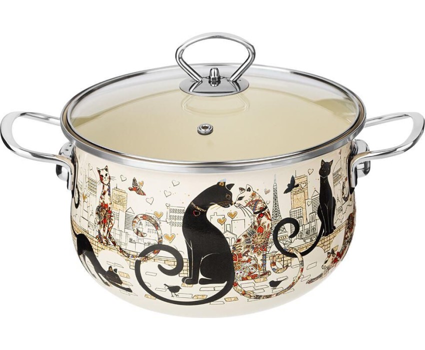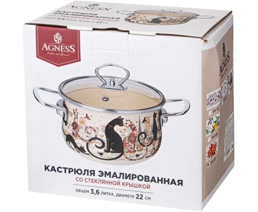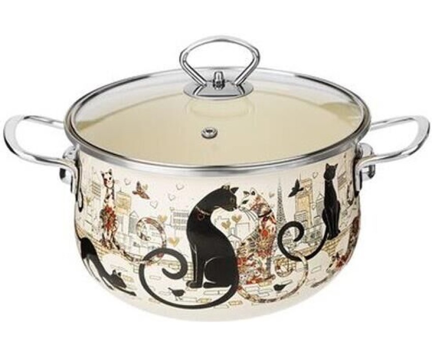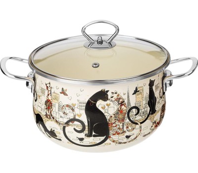 Кастрюля AGNESS КАСТРЮЛЯ ЭМАЛИРОВАННАЯ СО СТЕКЛЯННОЙ КРЫШКОЙ СЕРИЯ "ПАРИЖСКИЕ КОТЫ", 3.6 Л, 22*13 СМ 915-153