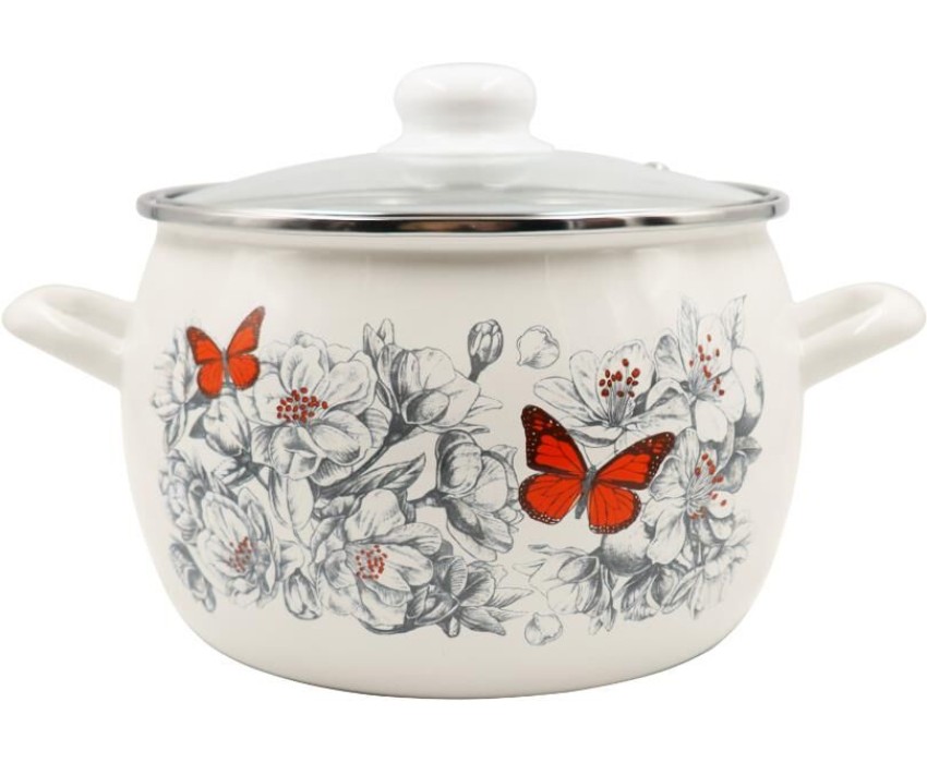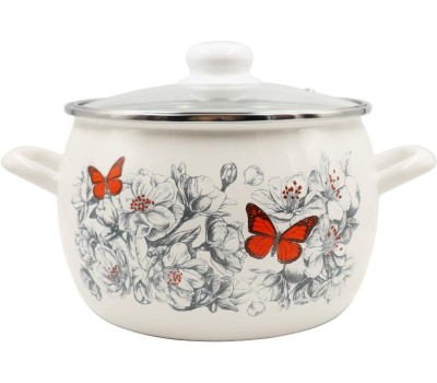 Кастрюля ЛЫСЬВЕНСКИЕ ЭМАЛИ Кастрюля эмал сфер 5,0л Яблоневый цвет стекл/кр