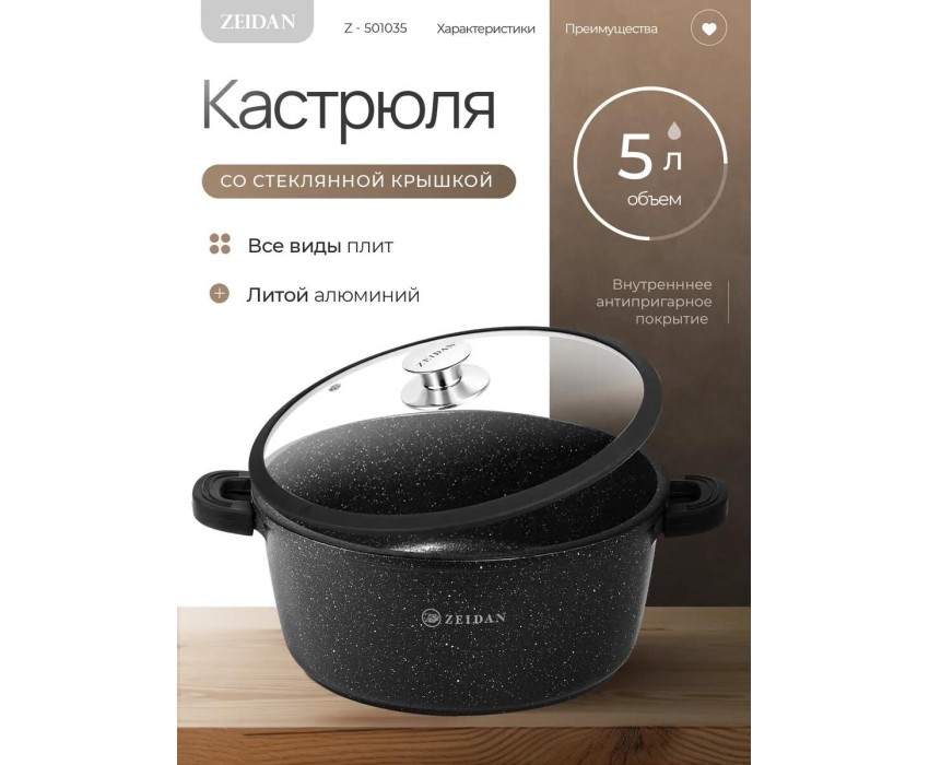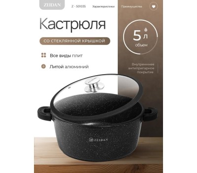 ZEIDAN Кастрюля Z-501035 5,0 л с крышкой Black