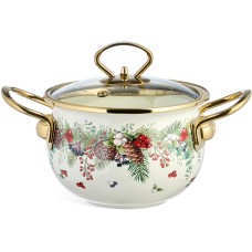 Кастрюля AGNESS КАСТРЮЛЯ ЭМАЛИРОВАННАЯ СО СТЕКЛЯННОЙ КРЫШКОЙ СЕРИЯ "CELEBRATION", 1.5 Л, 16*10 СМ 943-082