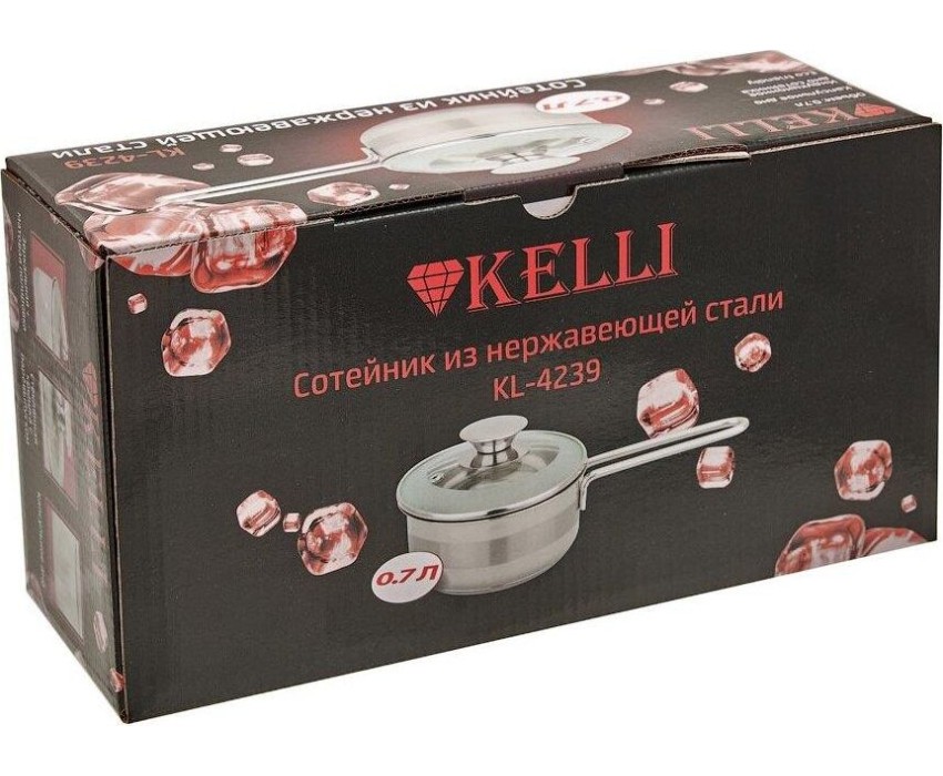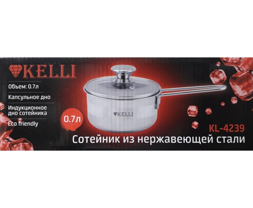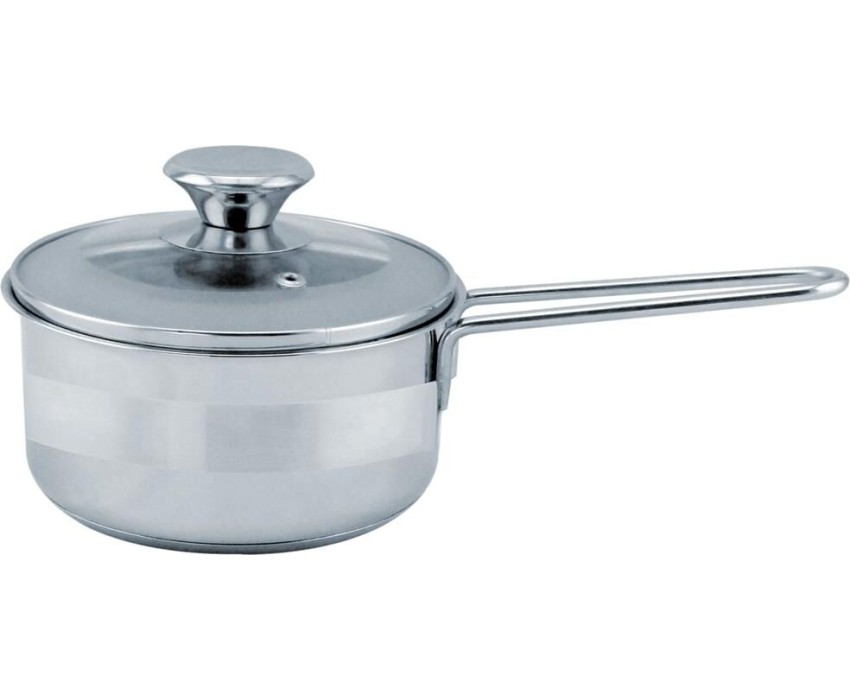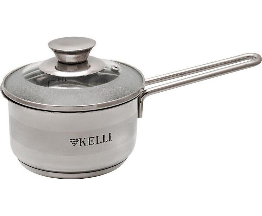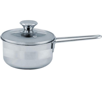 Ковш с жаропрочной крышкой 0.7л. Высококачественная нержавеющая сталь. Капсульное дно. Термостойкая клепаная ручка. Прозрачная стеклянная крышка с паровыпуском.