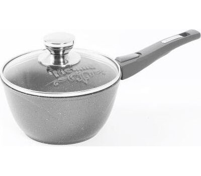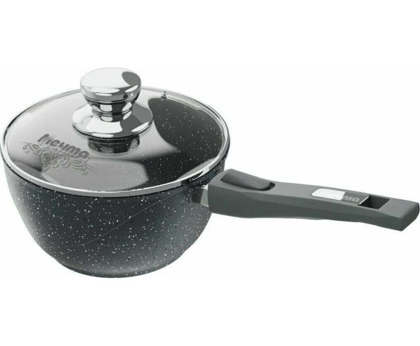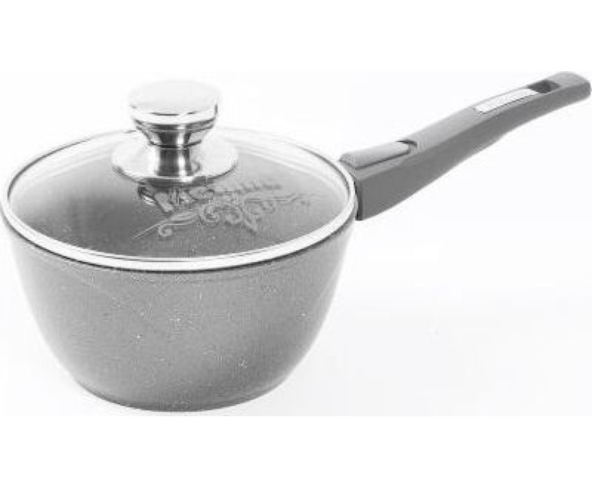 Ковш 1.2л с антипригарным покрытием, съемной ручкой и стеклянной крышкой серии "Гранит" Подходит для всех типов плит, кроме индукционных. Можно использовать в посудомоечной машине. Можно использовать в духовке отдельно без ручки и крышки.