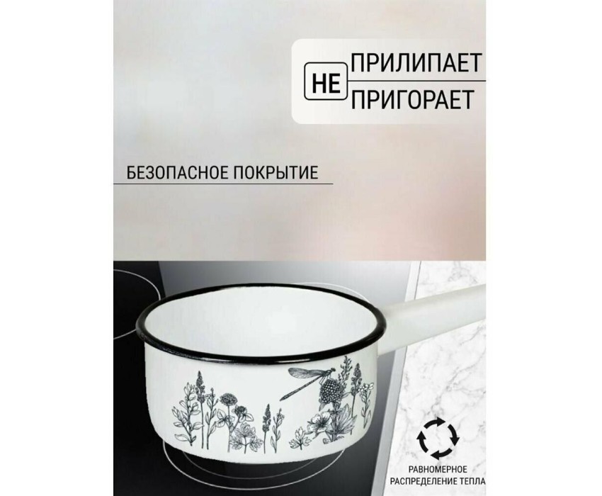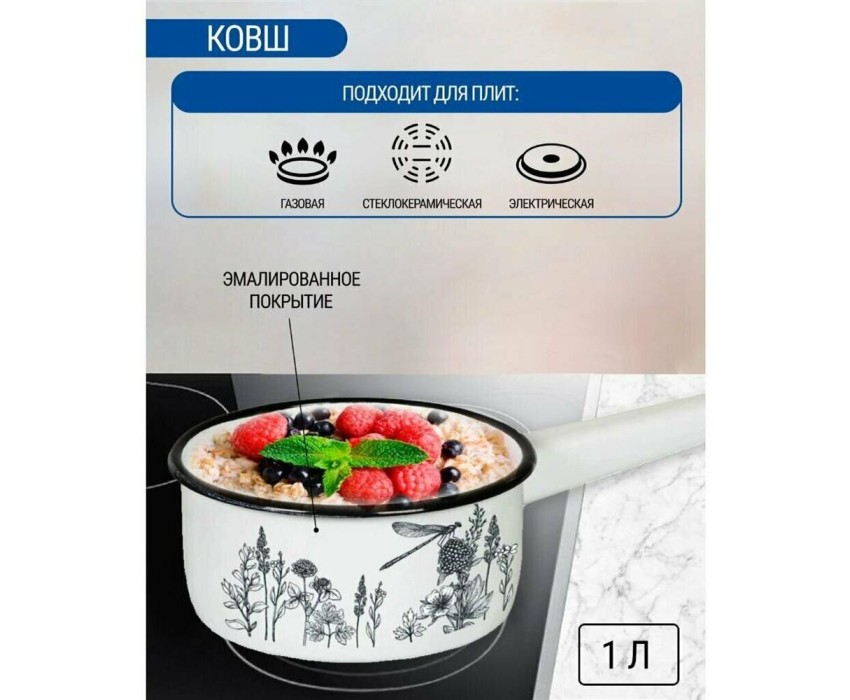 Объем, л./размер, см: 1.0 л Материал: эмалированная сталь Коллекция/серия: FLORA-2 Источник тепла: Все виды плит Внутреннее покрытие: эмаль Внешнее покрытие: эмаль