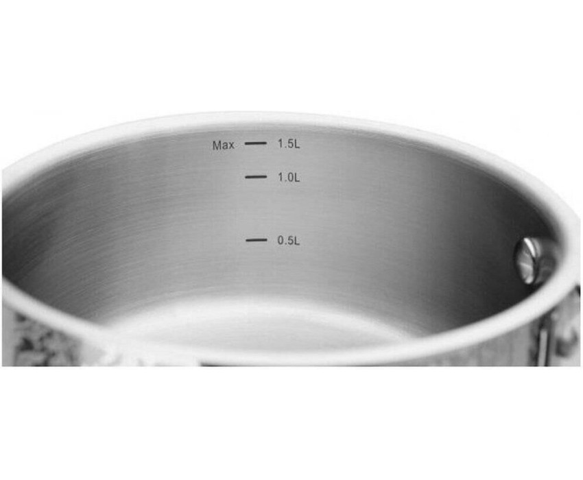 Ковш с крышкой. Объем: 1.5 литра. Подходит для всех видов плит, в том числе индукции. Жидкостекольная внешняя деколь. Тройное вштампованное, а затем вплавленное дно без воздушных полостей.