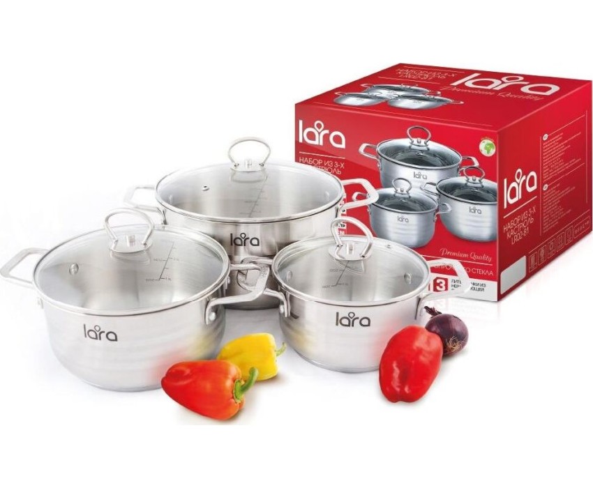 Набор кастрюль LARA LR02-81 Standart (2.0л.; 4.0л.; 5.2л.)