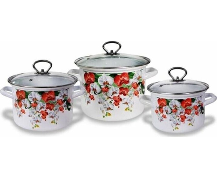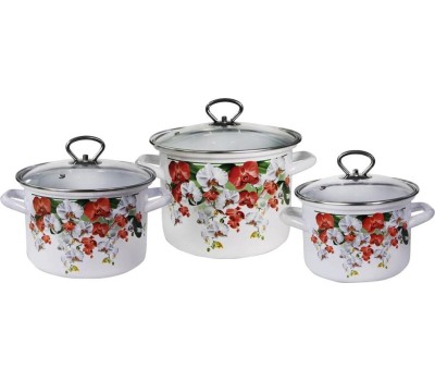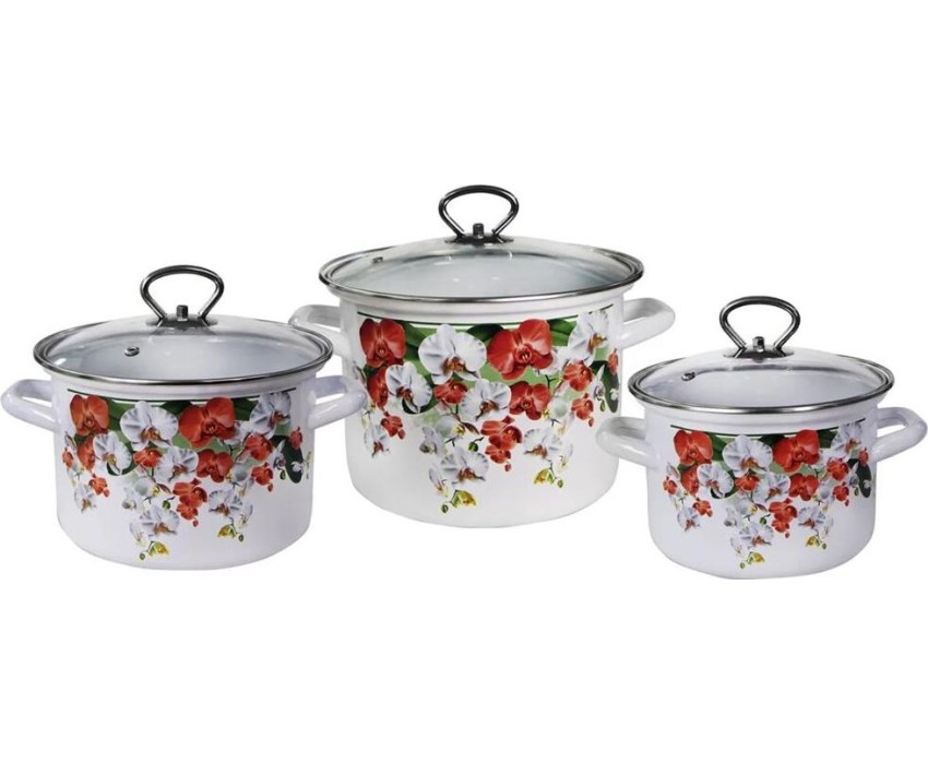 2,4л, 3,4л, 5,0л стеклянные крышки с нерж. ручками. Материал: эмалированная сталь Толщина дна: 0.8 Источник тепла: Все виды плит Тип упаковки: индивидуальная Крышка: стеклянная Внутреннее покрытие: эмаль Внешнее покрытие: эмаль