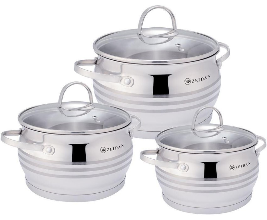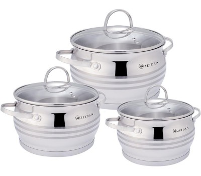 Набор посуды ZEIDAN Z-50669 6 предм. , Набор посуды, 6 предм. (3 КАСТРЮЛИ С КРЫШКАМИ: 2.0 Л (d16 см ), 3.0 Л (d18 см ), 4.0 Л (d20 см ), нержавеющая сталь, 3-х СЛОЙНОЕ КАПСУЛИРОВАННОЕ ДНО, крышки - стекло, внутренняя - матовая полировка корпуса, снаружи – комбинированная полировка корпуса.