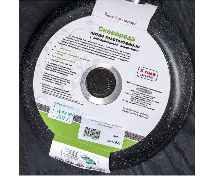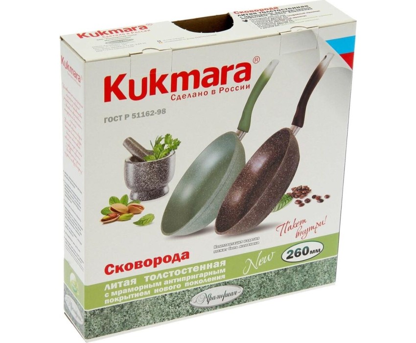 Объем, л./размер, см: 26см Материал: литой алюминий Коллекция/серия: Мрамор Торговая марка: Kukmara Толщина дна: 6 Толщина стенок: 4.5 Источник тепла: Все виды плит, кроме индукционной Тип упаковки: цветная коробка Внутреннее покрытие: антипригарное покрытие Greblon C2 фирмы Weilburger Coatings GmbH Внешнее покрытие: декоративное покрытие Poli Decor, Кирово-Чепецк