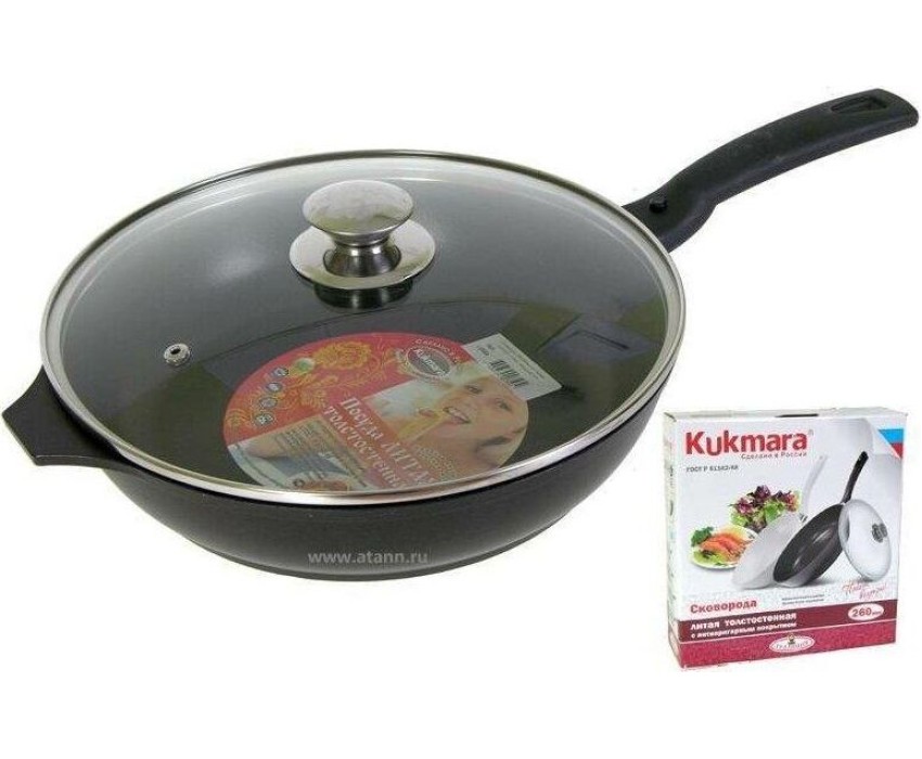 Объем, л./размер, см: 26см Материал: литой алюминий Коллекция/серия: Традиция Торговая марка: Kukmara Толщина дна: 6 Толщина стенок: 4.5 Источник тепла: Все виды плит, кроме индукционной Тип упаковки: цветная коробка Крышка: стеклянная Внутреннее покрытие: антипригарное покрытие Greblon C2 фирмы Weilburger Coatings GmbH Внешнее покрытие: антипригарное покрытие Greblon C2 фирмы Weilburger Coatings GmbH