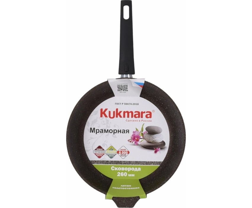 Сковорода а/пр литая 26см съемн/руч Кофейный мрамор ТМ KUKMARA. Высота стенок 60 мм Диаметр 240 мм Толщина дна до 6 мм Толщина стенок до 6 мм Диаметр дна 197 мм Материал корпуса Литой алюминий Покрытие Немецкое антипригарное покрытие Greblon Non-Stick C2+, усиленное сверхпрочными частицами минералов Подарочная упаковка Съемная бакелитовая ручка Ненагревающаяся ручка с эффектом Soft-touch Цвет внешнего покрытия Кофейный Цвет внутреннего покрытия Кофейный