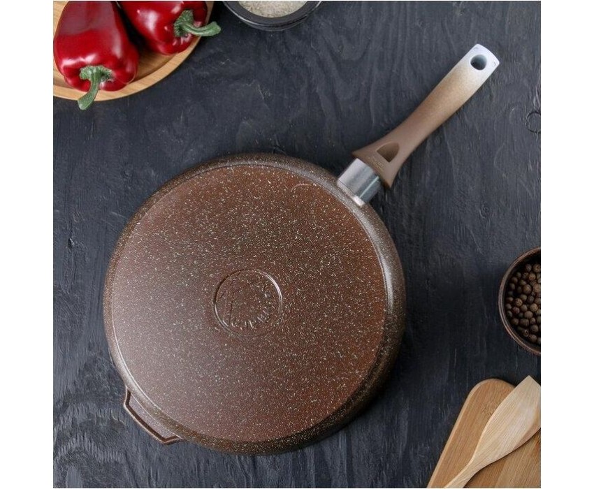 Сковорода а/пр литая 28см Кофейный мрамор Размеры (Ш х В х Д): 290 x 55 x 515 Вес (брутто): 1.71 кг. Диаметр дна: 24,5 см Антипригарное покрытие Диаметр изделия (мм): 28 см Плита Газовая. Электрическая, Стеклокерамическая (согласно инструкции по эксплуатации) Использование в посудомоечной машине