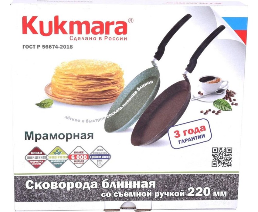 Сковорода KUKMARA сбмк220-1а а/пр литая блинная 22см съемн/руч Кофейный мрамор