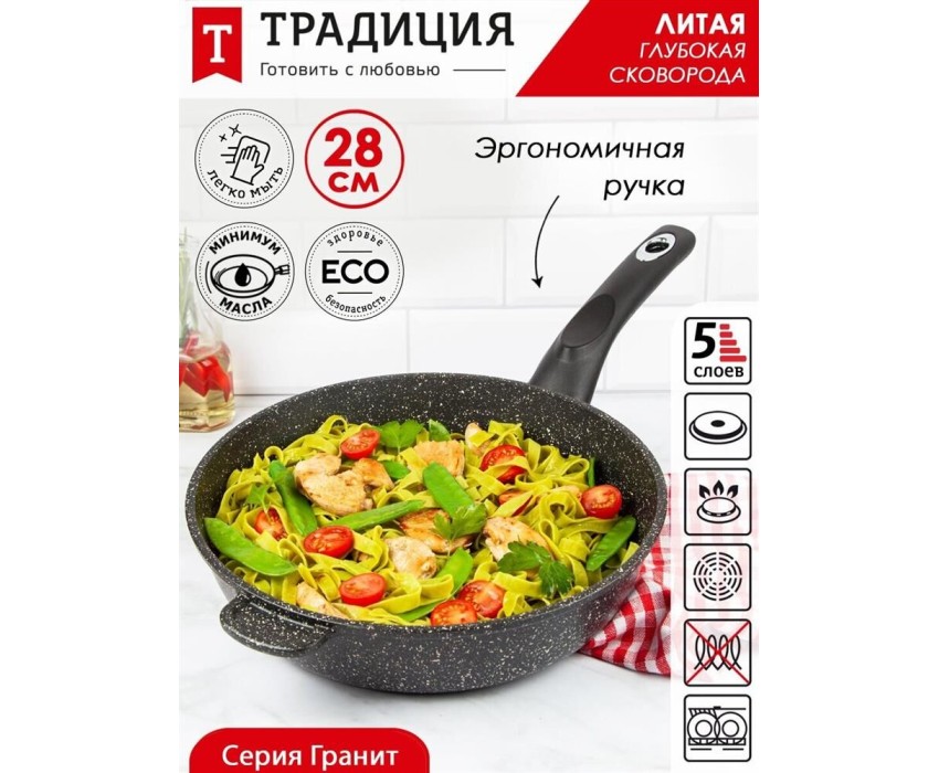 Сковорода ТРАДИЦИЯ ТГ2281 а/пр литая 28см Гранит