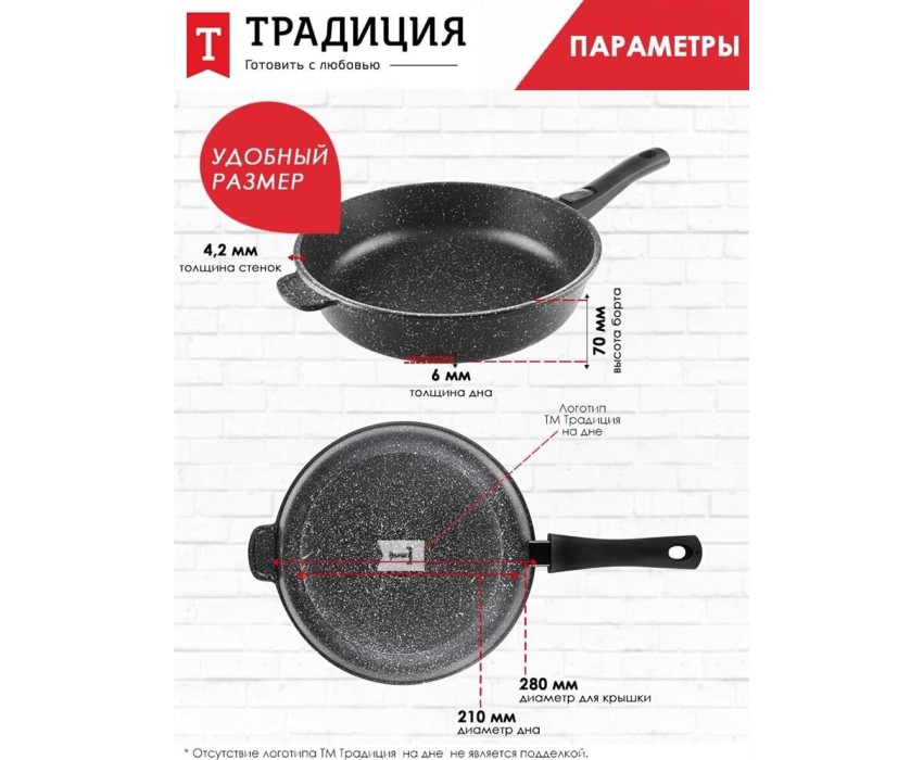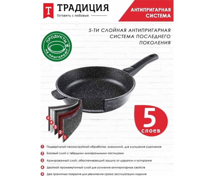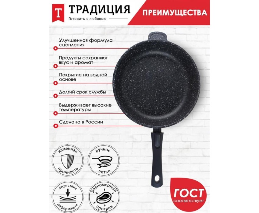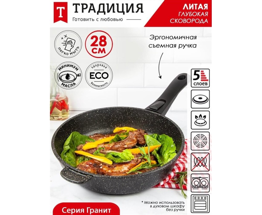 Сковорода ТРАДИЦИЯ ТГ2285 а/пр литая 28см съемн/руч Гранит