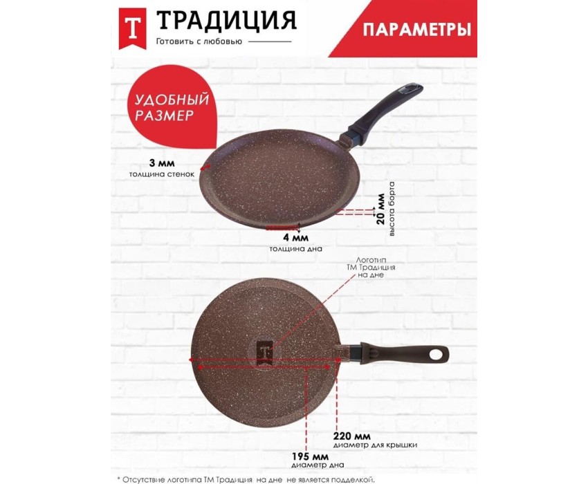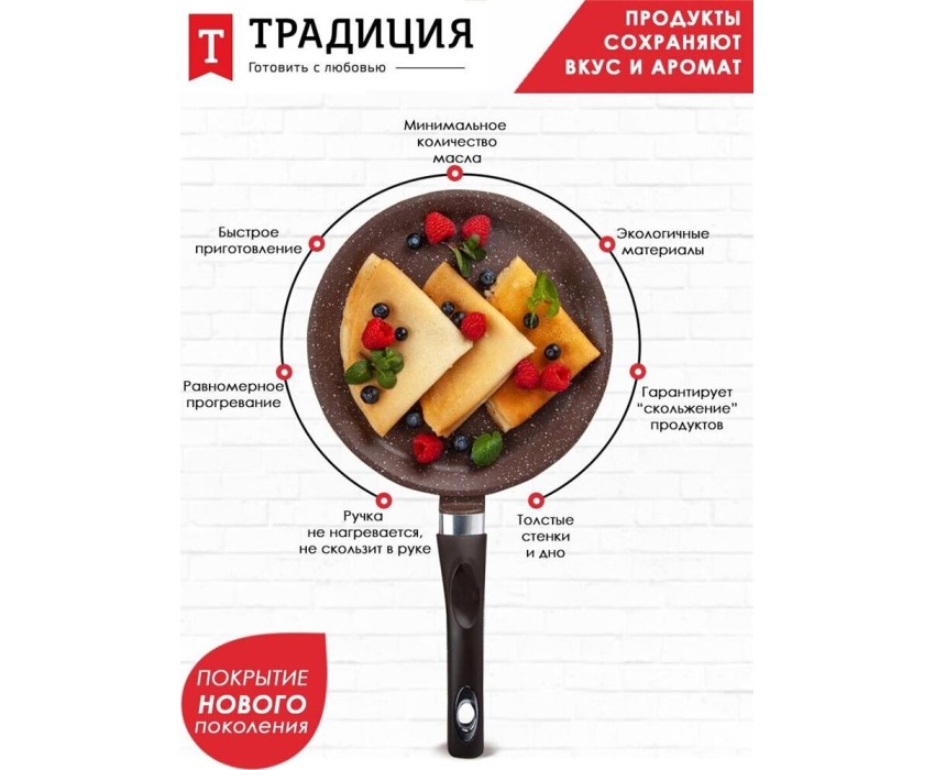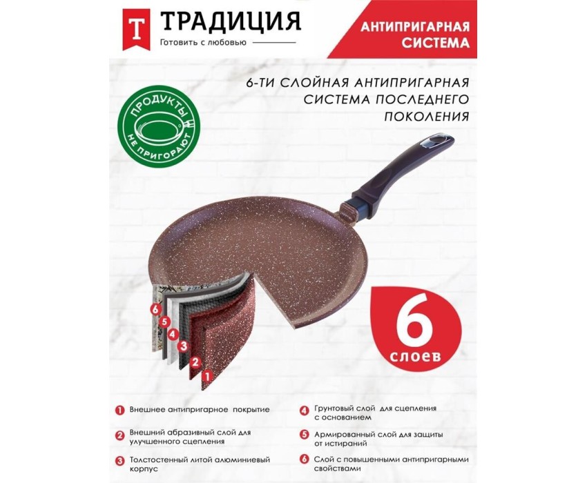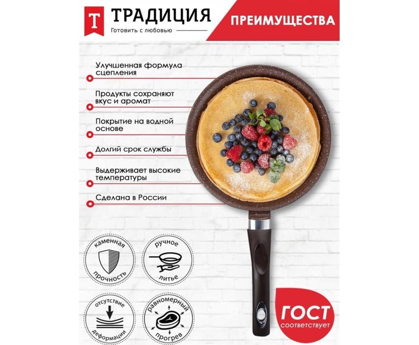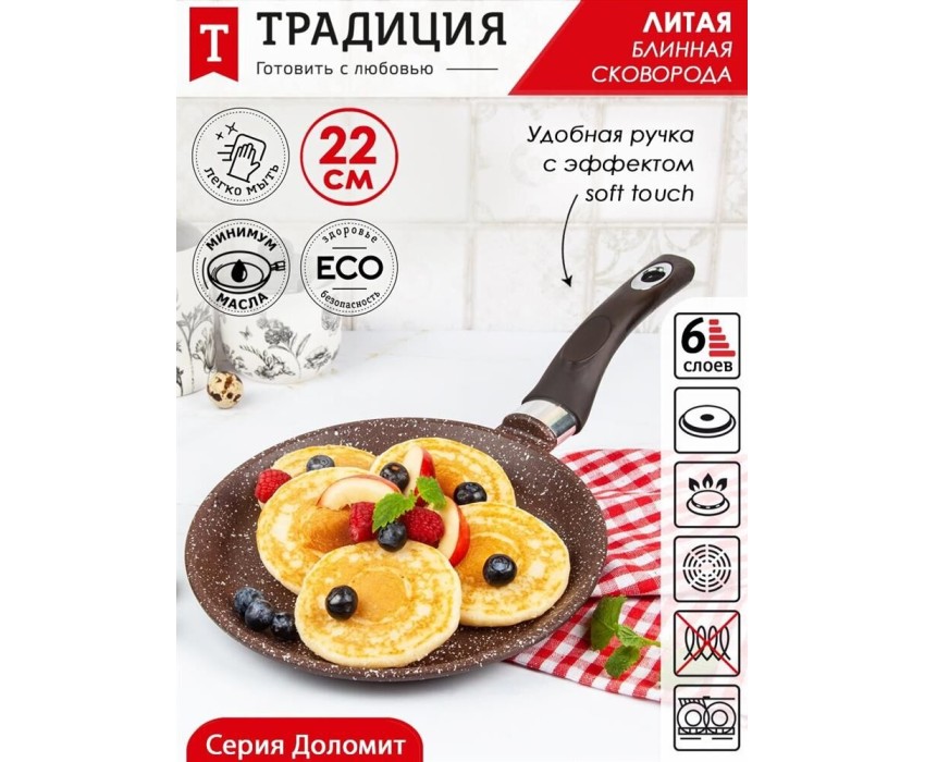Сковорода ТРАДИЦИЯ ТД6221 блинная литой алюм. 22см. Доломит