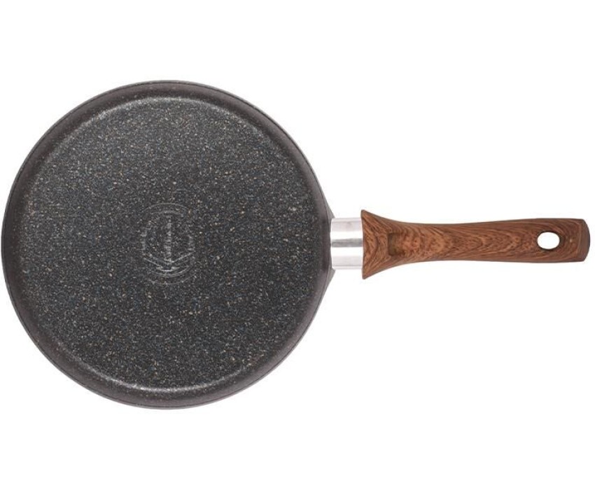 Материал корпуса - Литой алюминий Вид покрытия - Granit Ultra Диаметр - 22 см. Диаметр дна - 19,5 см. Вес - 650 гр. Высота - 2 см. Ручка - Несъемная бакелитовая ручка