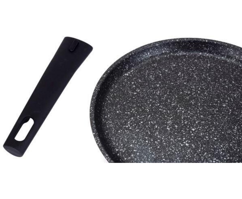 Материал корпуса - Литой алюминий Вид покрытия - Мраморная Диаметр - 22 см. Диаметр дна - 20 см. Вес - 800 гр. Высота - 2 см. Ручка - Съемная бакелитовая ручка Источник тепла: Все виды плит, кроме индукционной Толщина дна: 6 Толщина стенок: 4.5