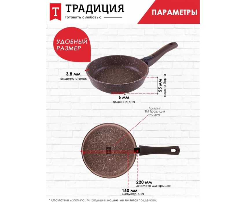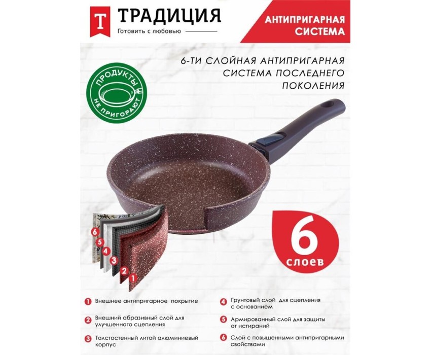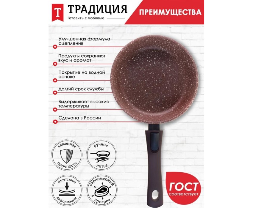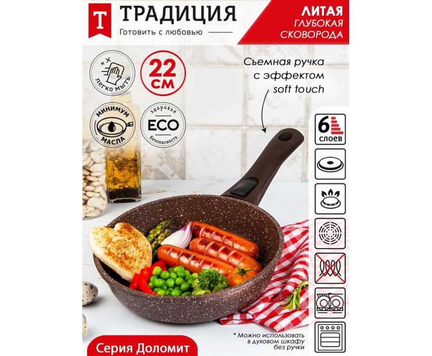 Сковорода ТРАДИЦИЯ ТД2225 антипригарная литая 22см съемн/руч Доломит