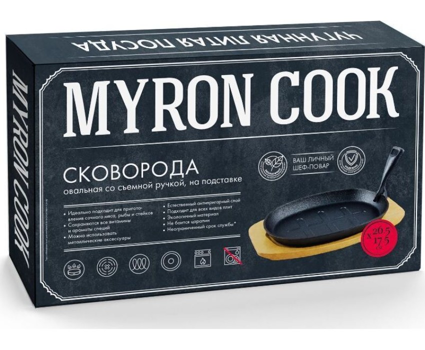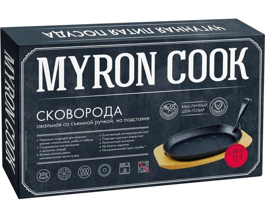 Сковорода MYRON COOK MC2265 чугунная съемн/руч 26,5х17,5см овал