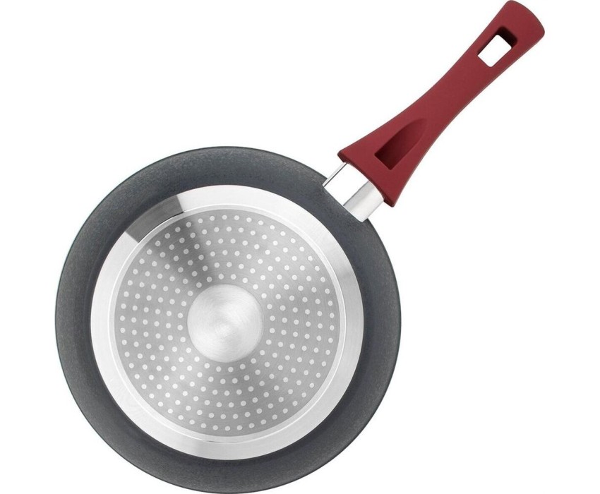 Бакелитовая ручка не нагревается при использовании конфорки или газовой горелки, не превышающей диаметр дна сковороды. Материал ручки - бакелит с soft-touch покрытием. Рекомендации: не подлежит эксплуатации в духовом шкафу, подходит для всех типов плит, в т.ч. индукционной. Упаковка: цветной рукав.