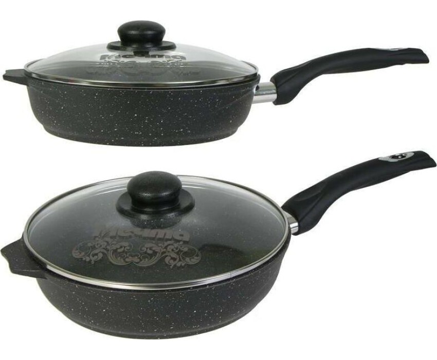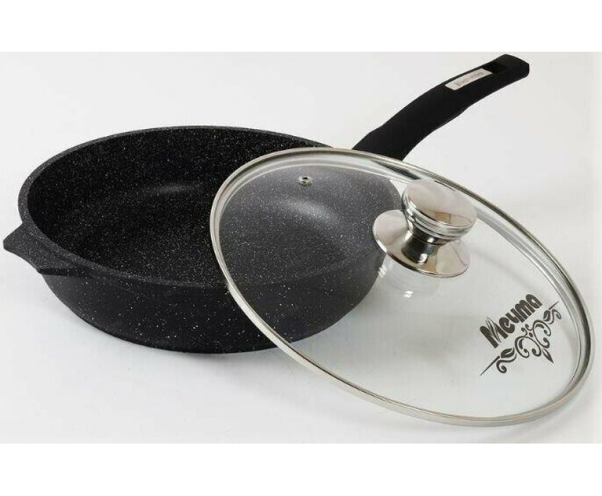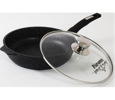 Сковорода МЕЧТА С26802 Гранит black 26см с несъемной ручкой и стекл. крышкой