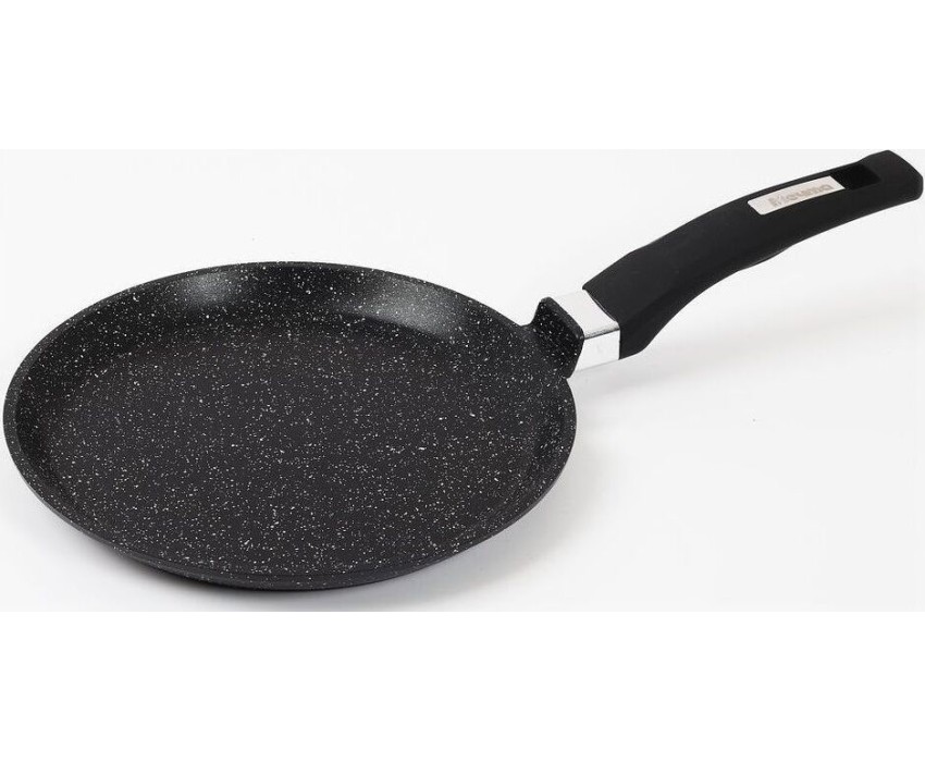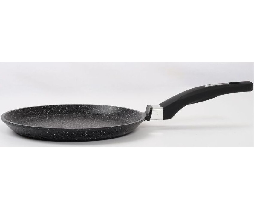 Сковорода блинная индукционная 24см с антипригарным покрытием и несъемной ручкой серии "Гранит black Induction Pro". Подходит для всех типов плит, можно использовать в посудомоечной машине.
