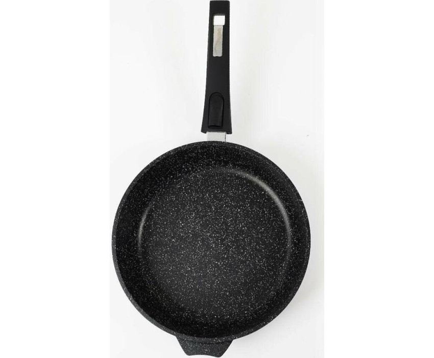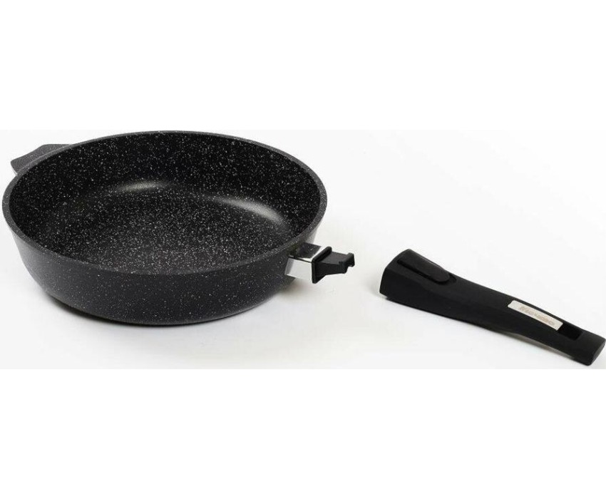 Сковорода индукционная 24см с антипригарным покрытием и несъемной ручкой серии "Гранит black Induction Pro". Подходит для всех типов плит, можно использовать в посудомоечной машине.