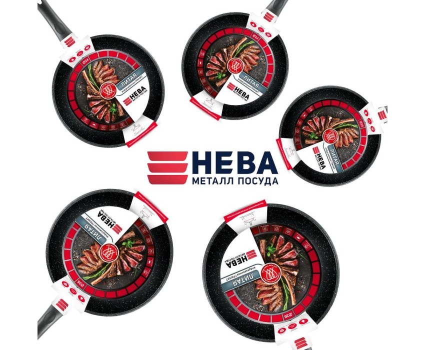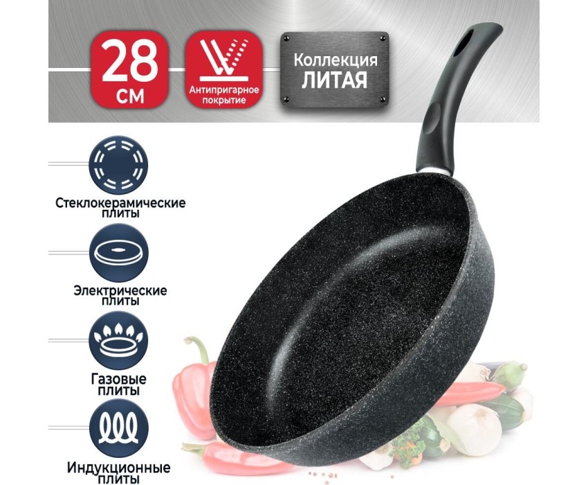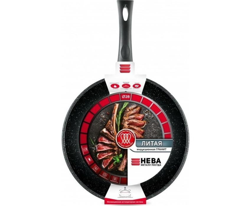 Сковорода НЕВА МЕТАЛЛ ПОСУДА L18128i а/пр литая 28см индукция Гранит 550000521