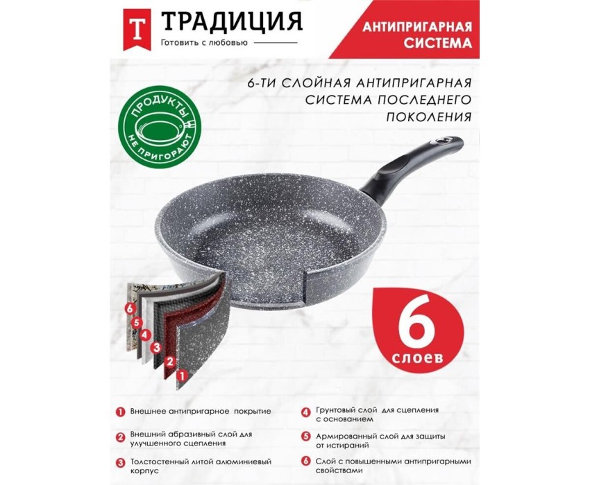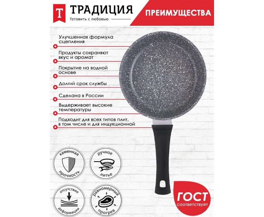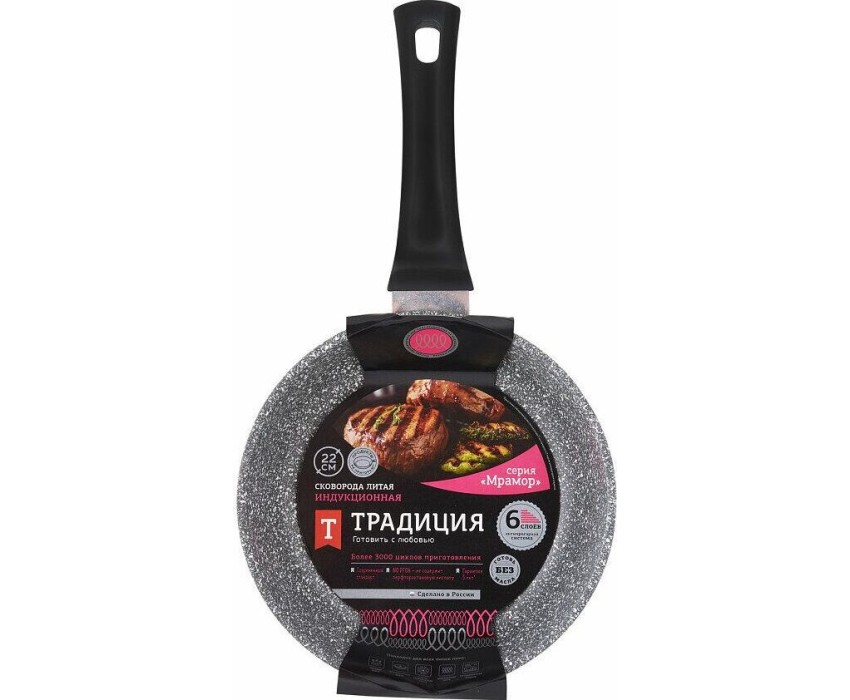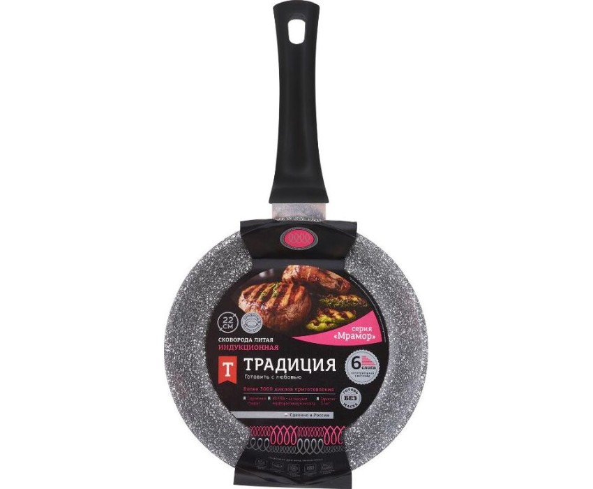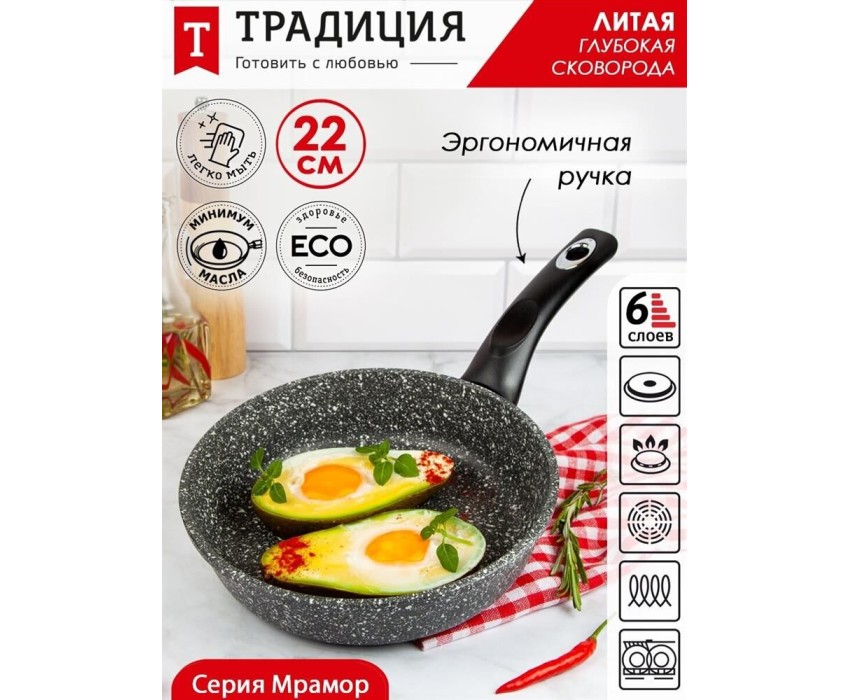 Сковорода ТРАДИЦИЯ ТМ2221И а/пр литая 22см Мрамор индукция