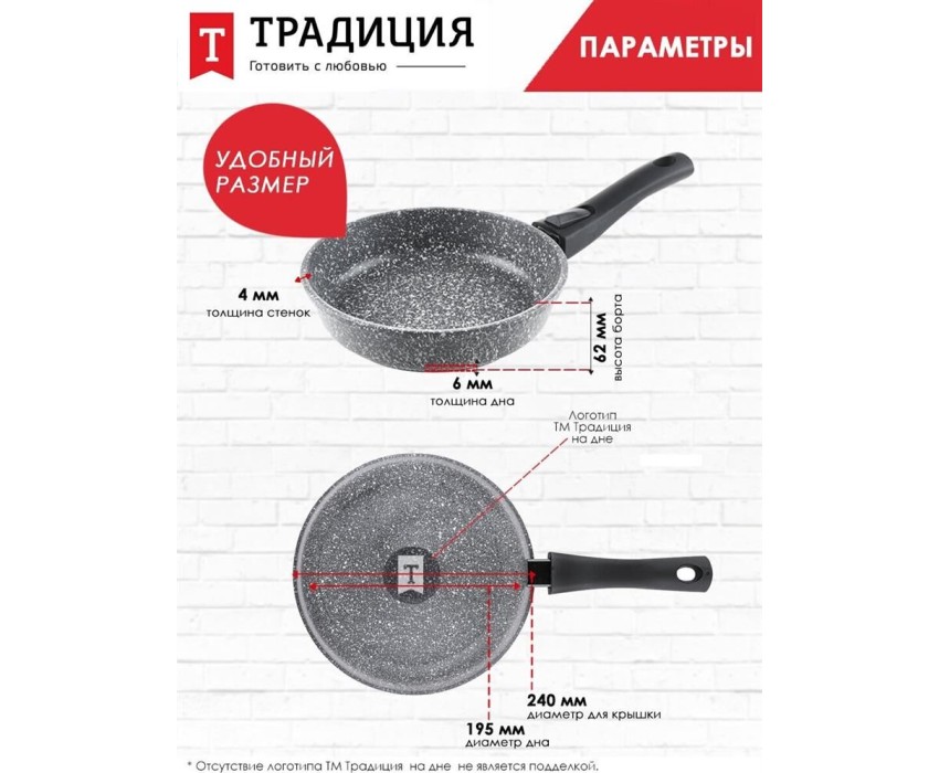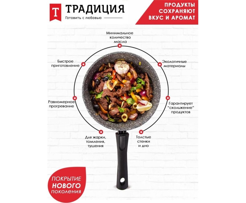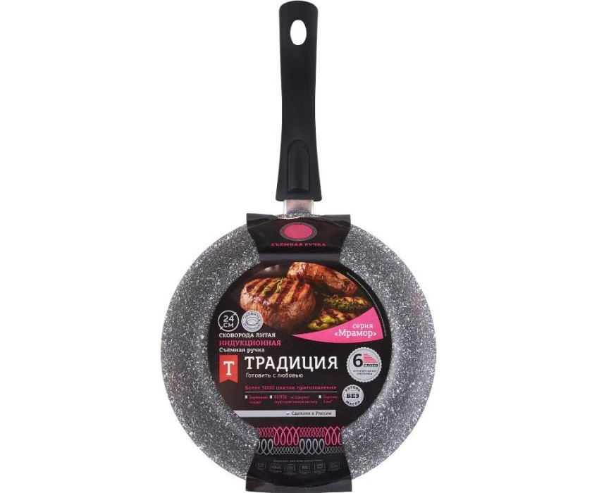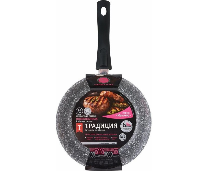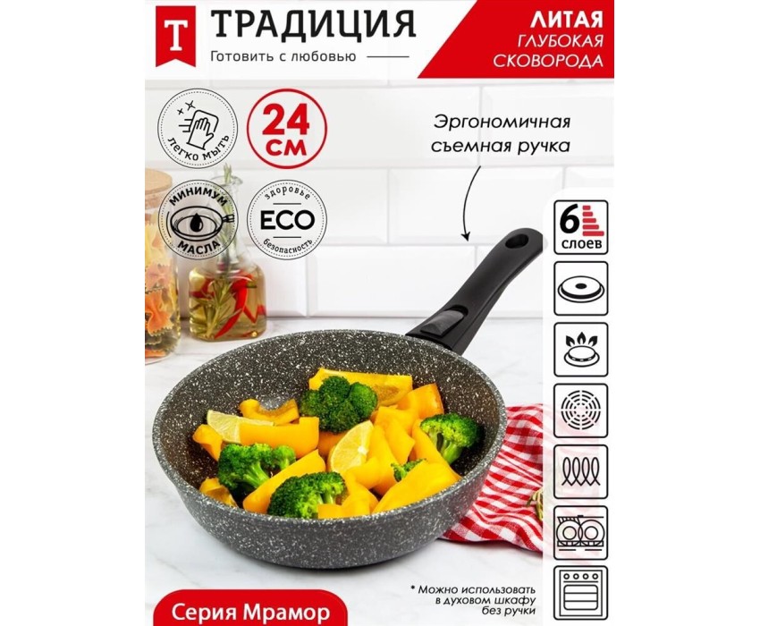 Сковорода ТРАДИЦИЯ ТМ2245И а/пр литая 24см съемн/руч Мрамор индукция