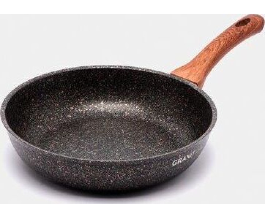 Материал корпуса - Литой алюминий Вид покрытия - Granit Ultra blue. Диаметр - 26 см. Ручка - Несъемная бакелитовая ручка. Подходит ко всем видам плит, кроме индукции. Можно мыть в посудомоечной машине.