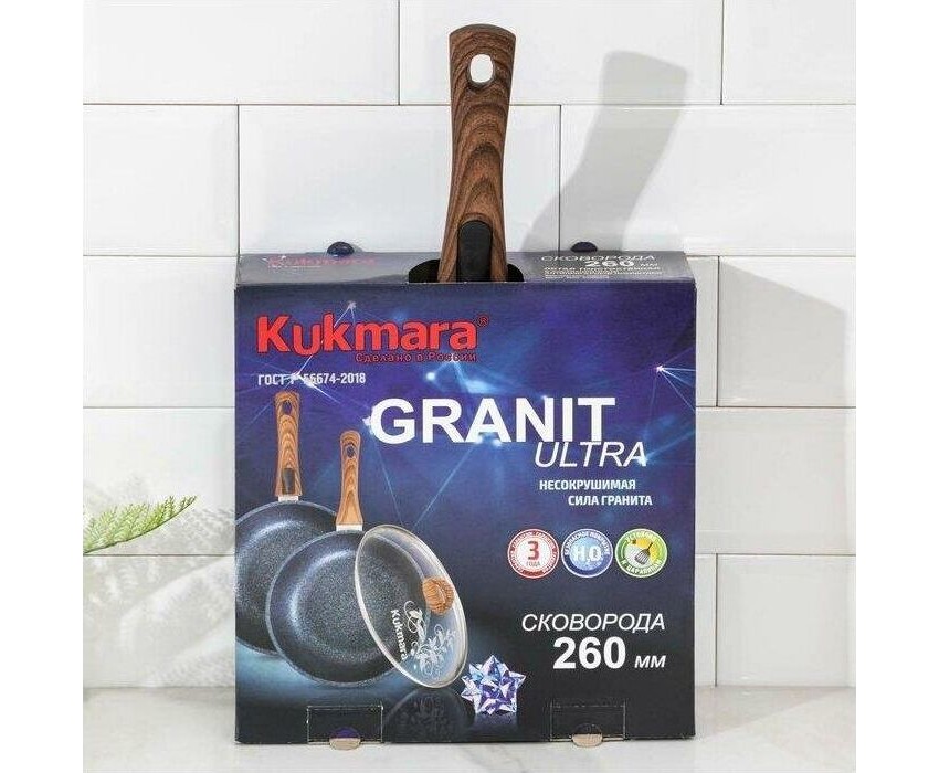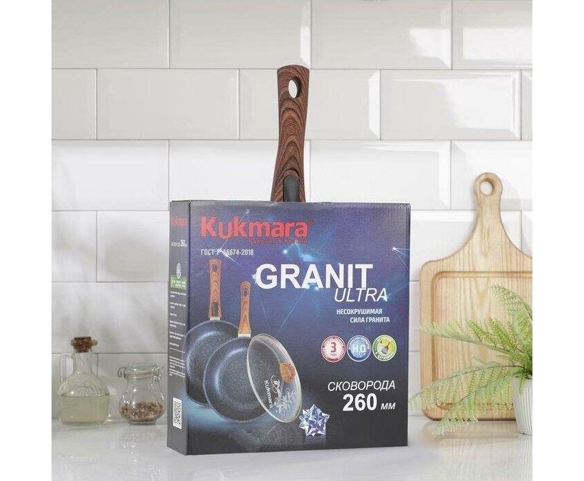Сковорода KUKMARA сгг263а а/пр литая 26см съемн/руч стекл/кр Granit ultra blue