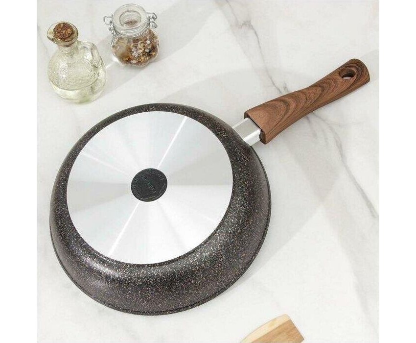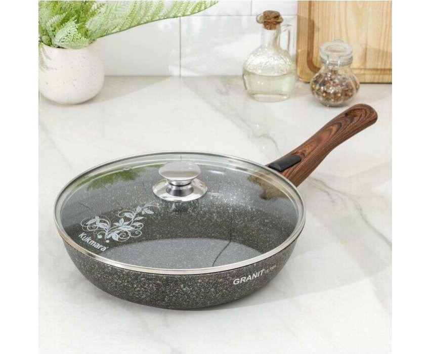 Материал корпуса - Литой алюминий Вид покрытия - Granit Ultra blue. Диаметр - 26 см. Съемная ручка. Подходит ко всем видам плит, кроме индукции. Можно мыть в посудомоечной машине. Крышка в комплекте.