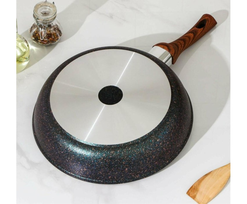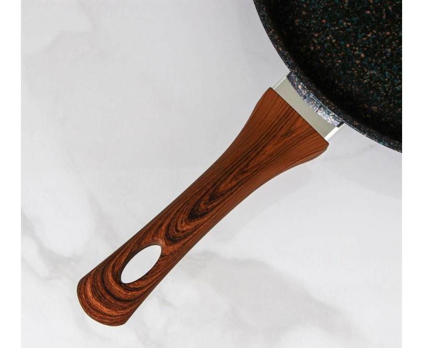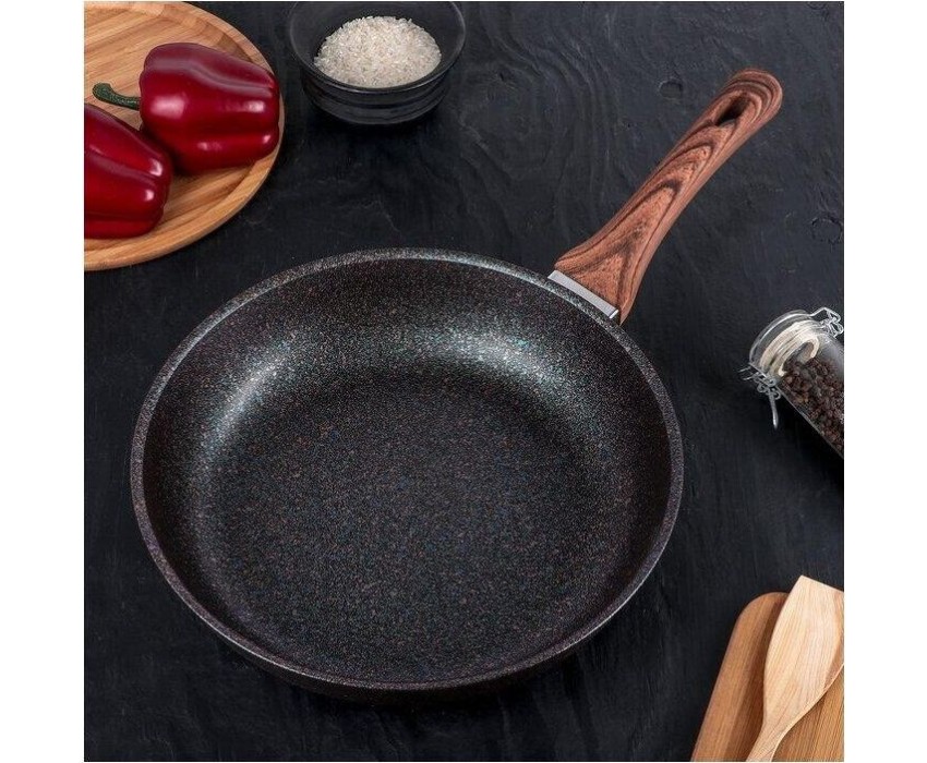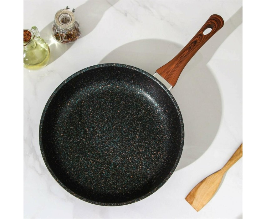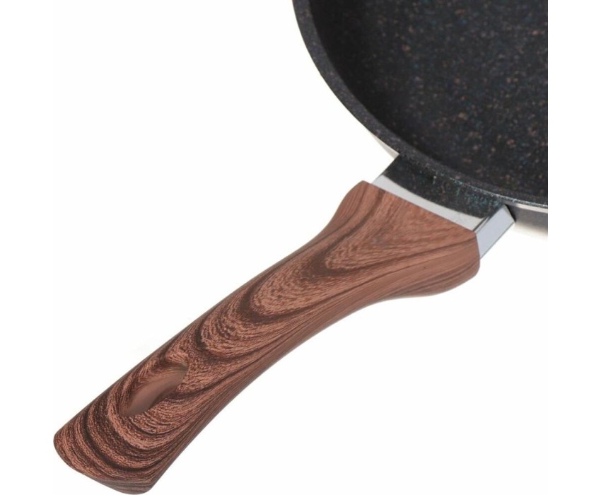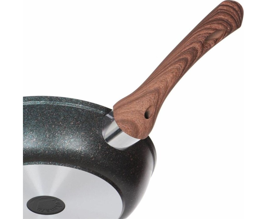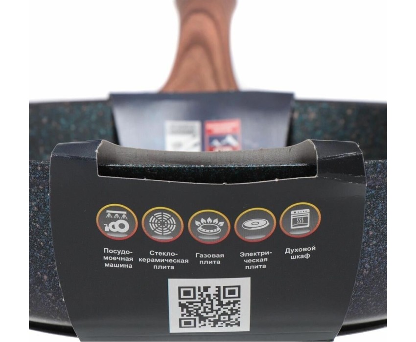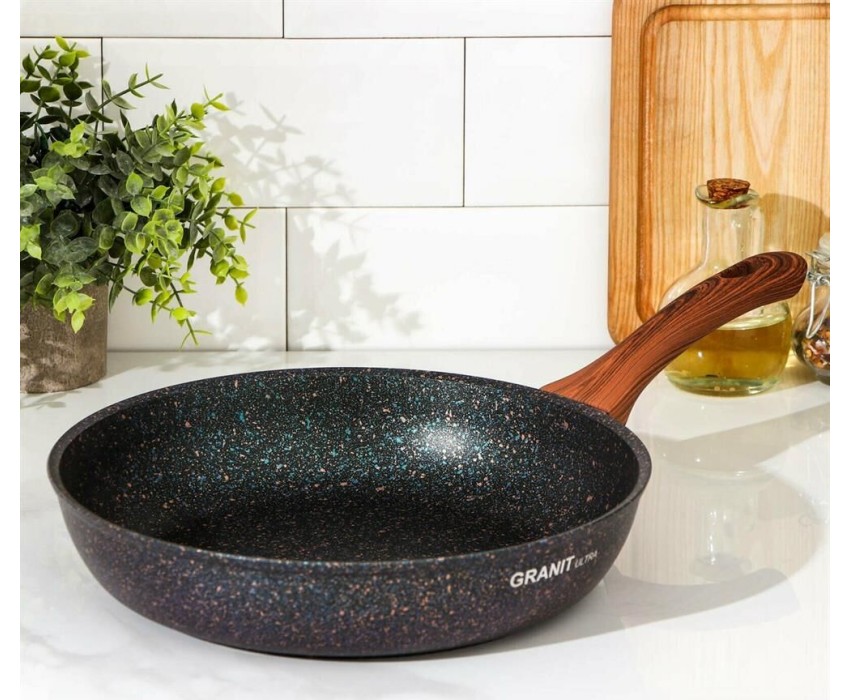 Материал корпуса - Литой алюминий Вид покрытия - Granit Ultra blue. Диаметр - 28 см. Ручка - Несъемная бакелитовая ручка. Подходит ко всем видам плит, кроме индукции. Можно мыть в посудомоечной машине.