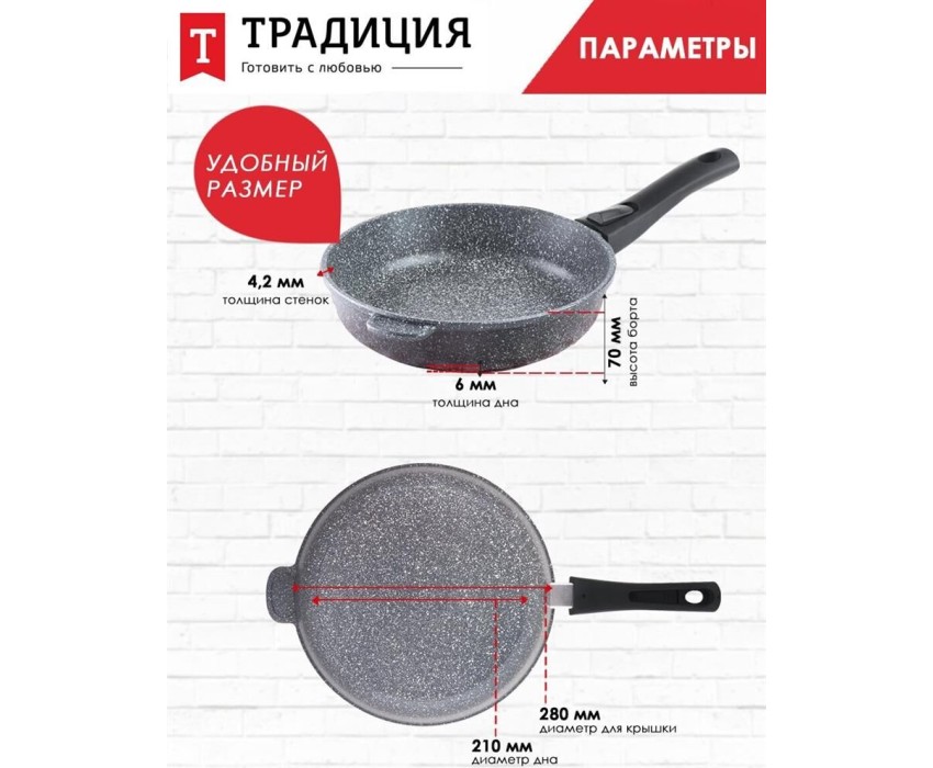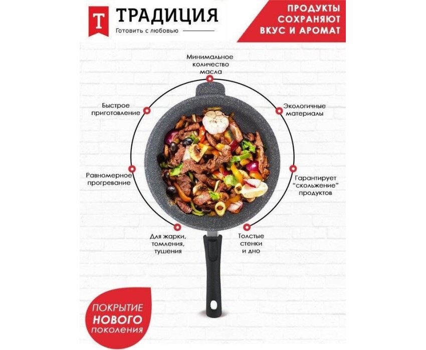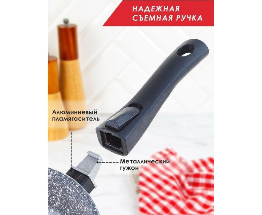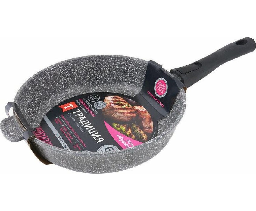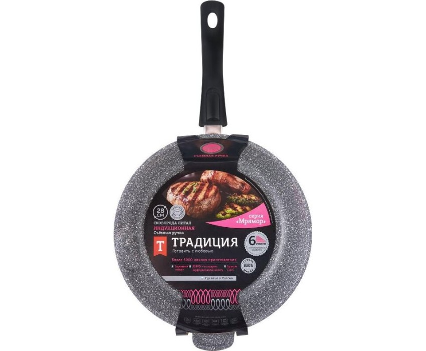 Сковорода ТРАДИЦИЯ ТМ2285И а/пр литая 28см съемн/руч Мрамор индукция